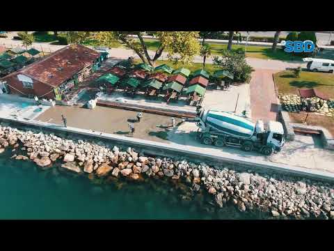 Kdz. Ereğli’de 19 Kasım 2023 yaşadığımız büyük felaketin ardından yeniden inşaa edilen ve büyük bir oranda yapılan sahil bandında yürüyüş yollarında renkli baskı beton çalışması yapılıyor.