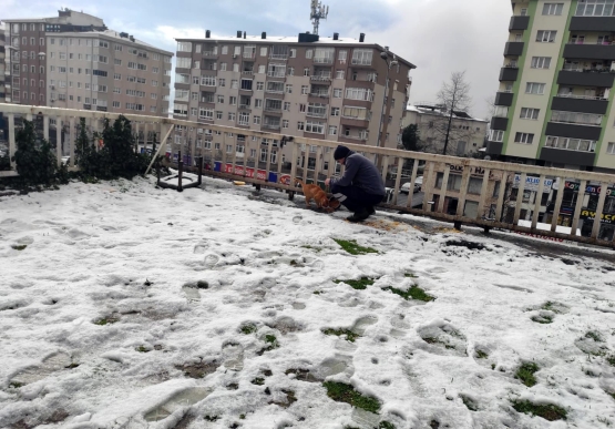 Ekipler, kar yağışı nedeniyle yiyecek bulmakta zorlanan sokak hayvanları için kedi ve köpeklerin kolay ulaşabileceği park ve yeşil alanlara mama dağıtımı gerçekleştirdi.