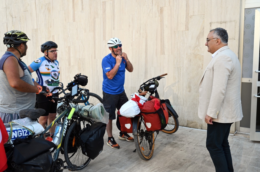 İstanbul Esenyurt’tan yola çıkan ve 700 kilometre sürecek İnebolu yolculuğuna pedal çeviren Saim Güral ve arkadaşı Nasip Yıldız, Kdz. Ereğli Belediyesi’ni ziyaret etti.
