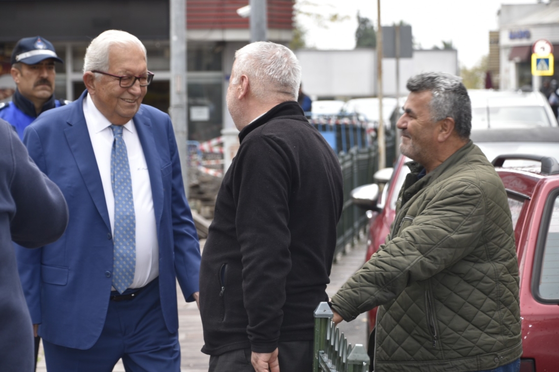 Un pazarında belediyenin yaptığı çalışmayı yerinde denetleyen Başkan Posbıyık, Su ve Kanalizasyon İşleri Müdürü Deniz Koca’dan brifing aldı.
