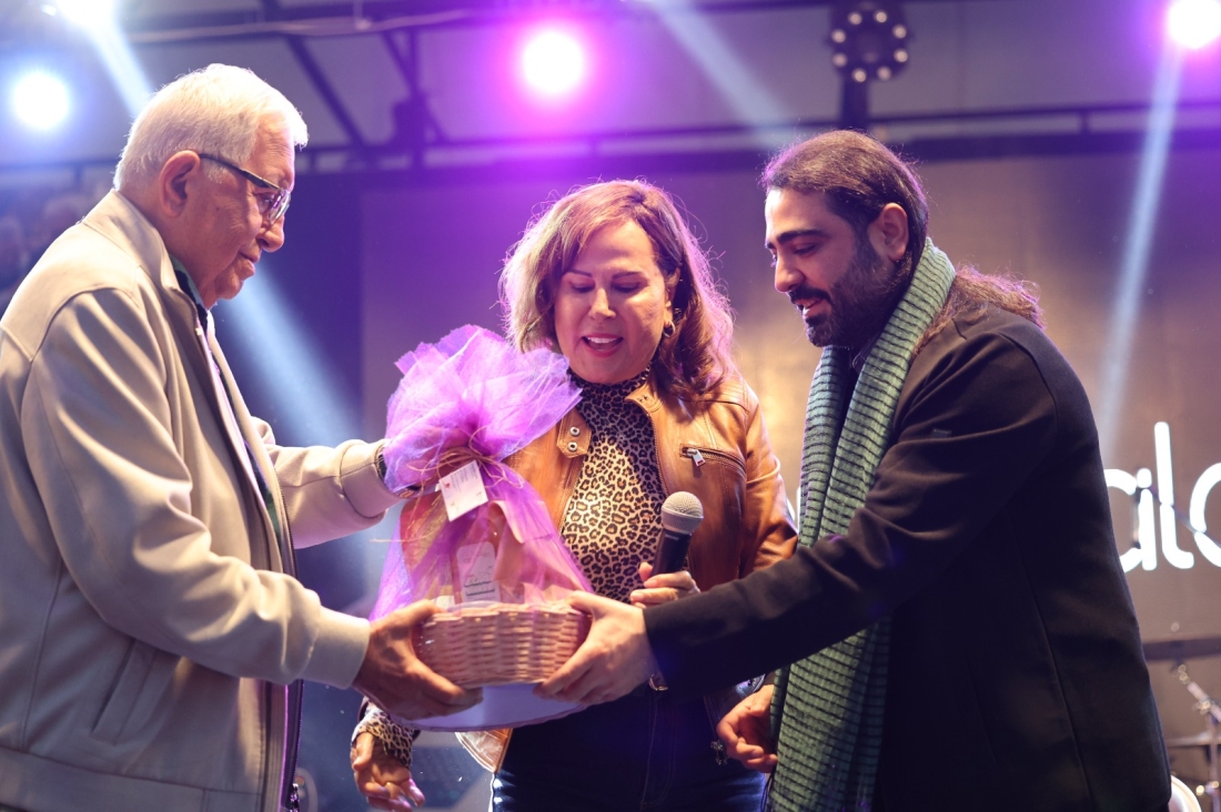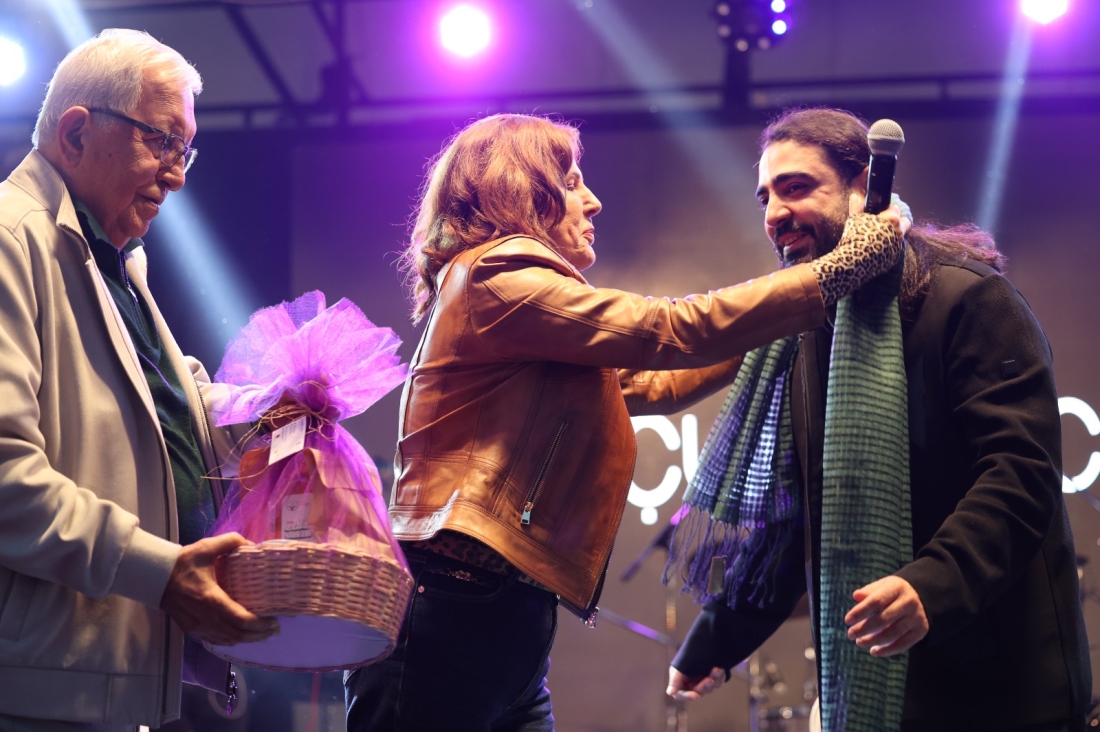 Kadın Gücü Kooperatifi Başkanı Neriman Posbıyık da, sanatçıya kadınların el emekleriyle ürettiği ürünlerden sanatçıya takdimde bulundu.