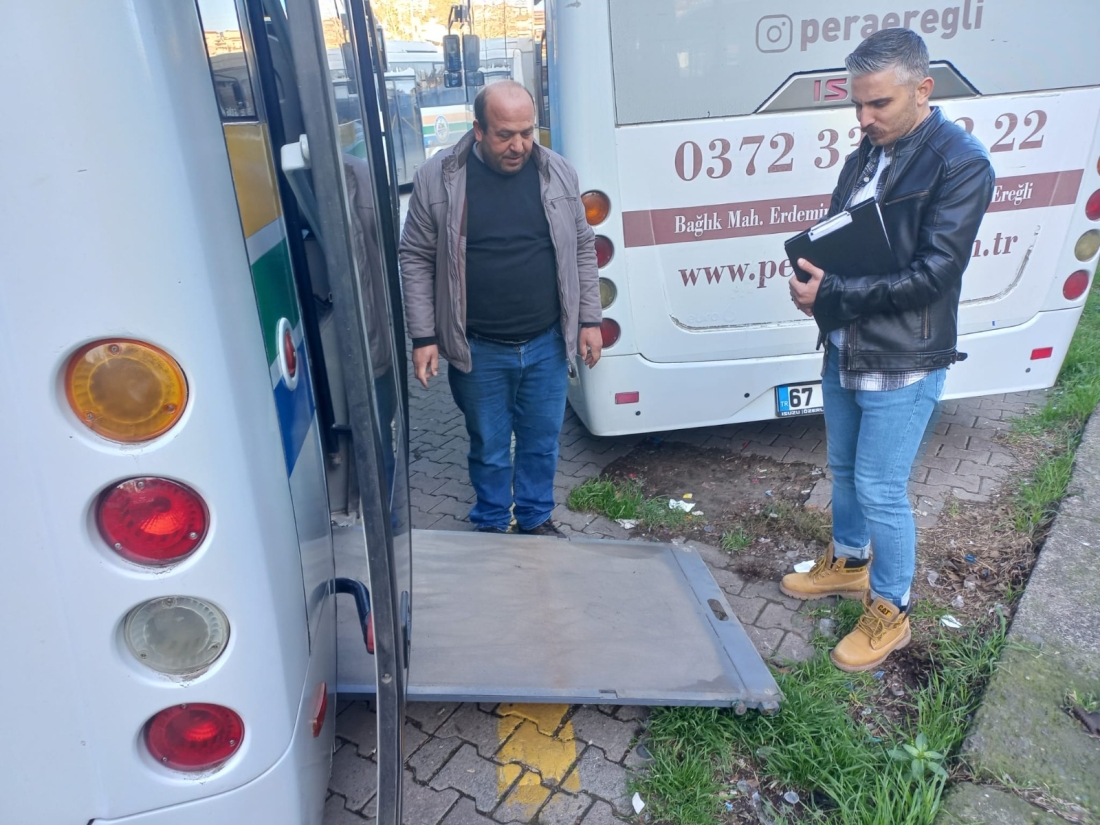 Bu kapsamda, Ereğli’de toplu taşıma yapan Çilek Halk Otobüsleri Kooperatifi’ne mensup 115 otobüste engelli rampasının çalışıp çalışmadığı denetlendi.