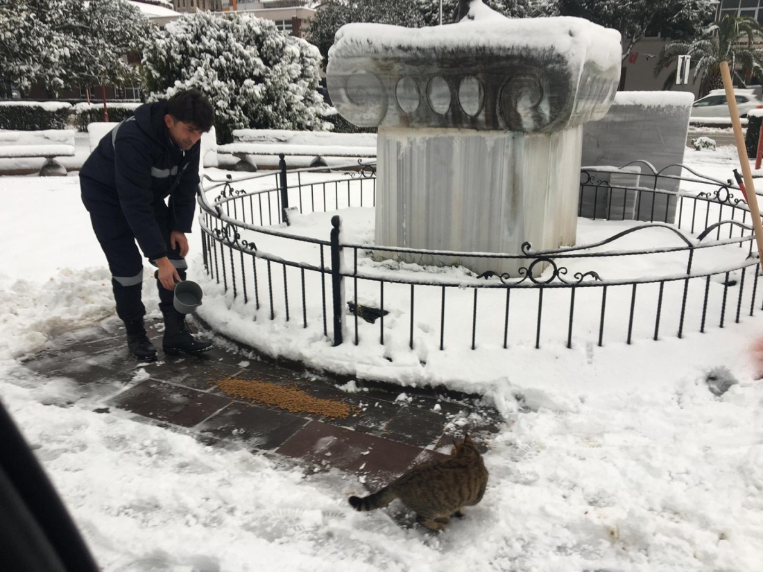 Ekipler kar yağışı nedeniyle yiyecek bulmakta zorlanan sokak hayvanları için kedi ve köpeklerin kolay ulaşabileceği park ve yeşil alanlara mama dağıtımı gerçekleştirdi.