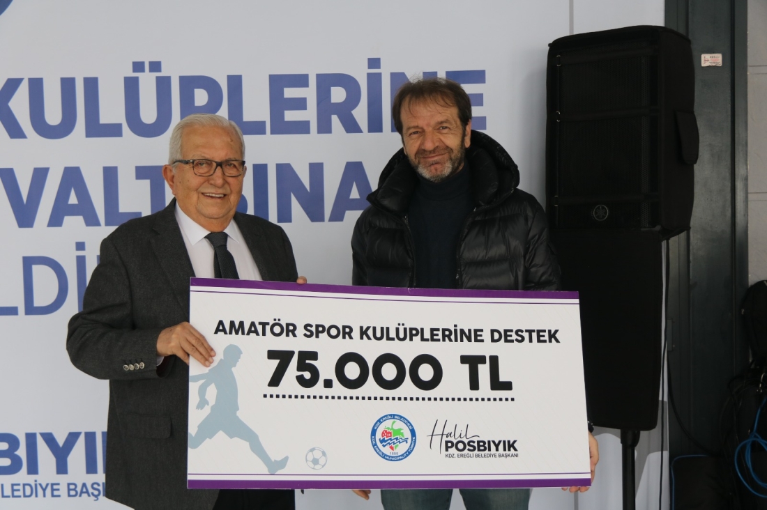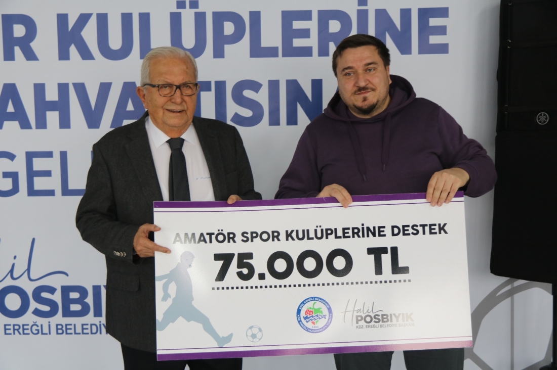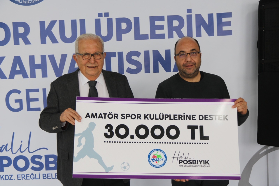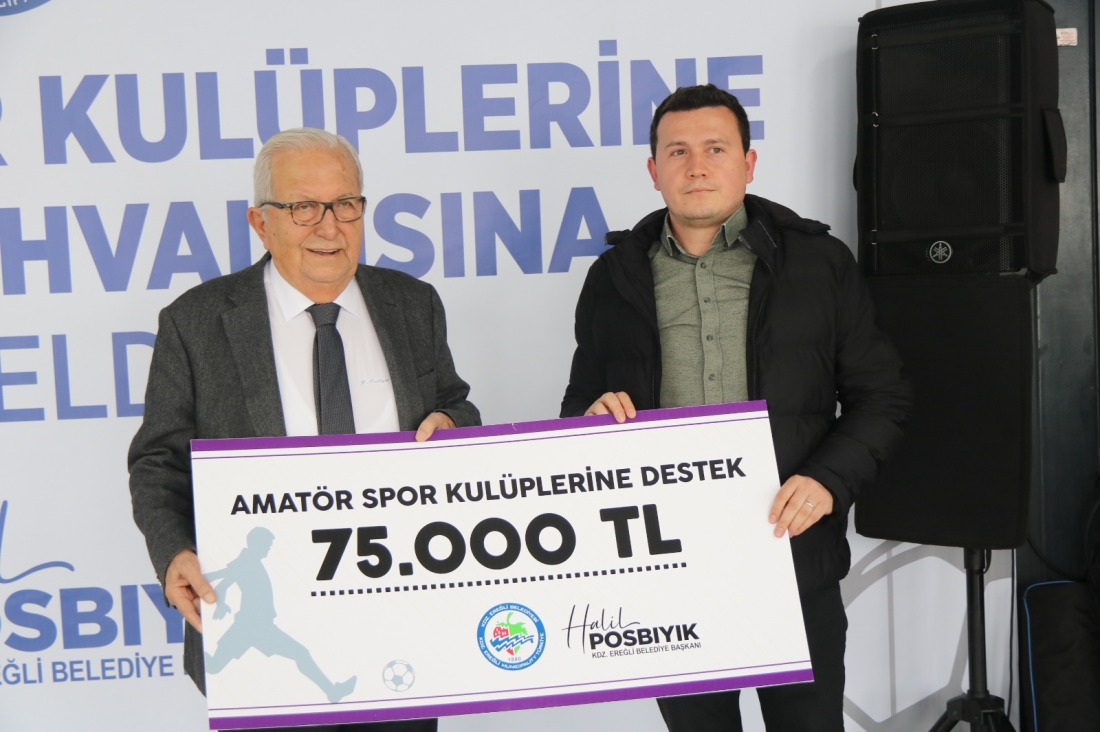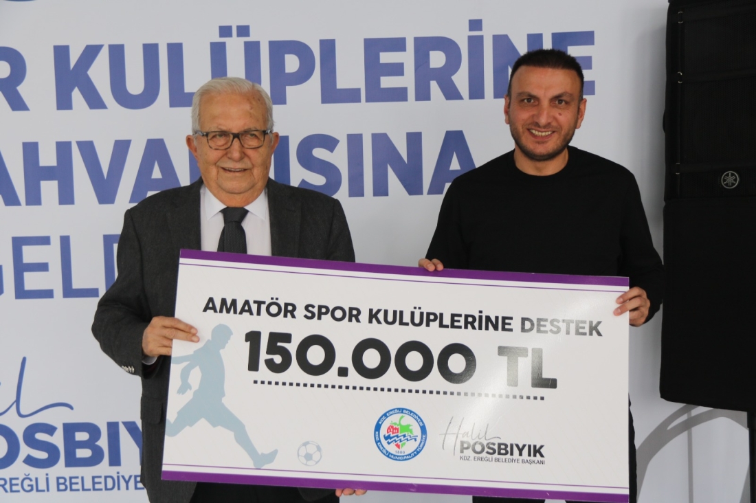 Kdz. Ereğli Belediye Başkanı Halil Posbıyık, kentteki amatör spor kulüplerinin başkan ve yöneticileriyle bir araya gelerek 22 spor kulübüne 1,5 milyon TL nakdi yardımda bulundu. Başkan Posbıyık, sıkıntılı durumda dahi amatör spor kulüplerine desteği sürdürdüklerini belirterek, Ereğli’de sporda, müzikte, sanatta insan gücü olmasına rağmen spor alt yapısında gereken yatırımların yapılmadığını söyledi; “30 spor kulübü antrenman yapabilmek için Beyçayırı stadını 6’ya, 7’ye bölüyorlar, sırada bekliyorlar. Devrek ve Çaycuma’yı hükümet yatırımlarında kıskanıyoruz” dedi. ASKF Başkanı Kemal Demir’de, “2019 yılından beri amatör spor kulüpleri maddi imkansızlıklar yaşıyor ancak Halil Posbıyık bizi yalnız bırakmıyor. Zonguldak ve ilçelerinde, beldelerinde bu organizasyonu tek yapan Halil Posbıyık, amatör spor kulüpleri adına teşekkür ediyorum” diye konuştu.