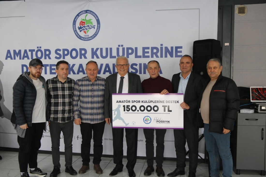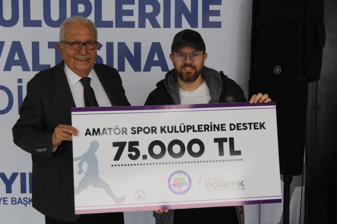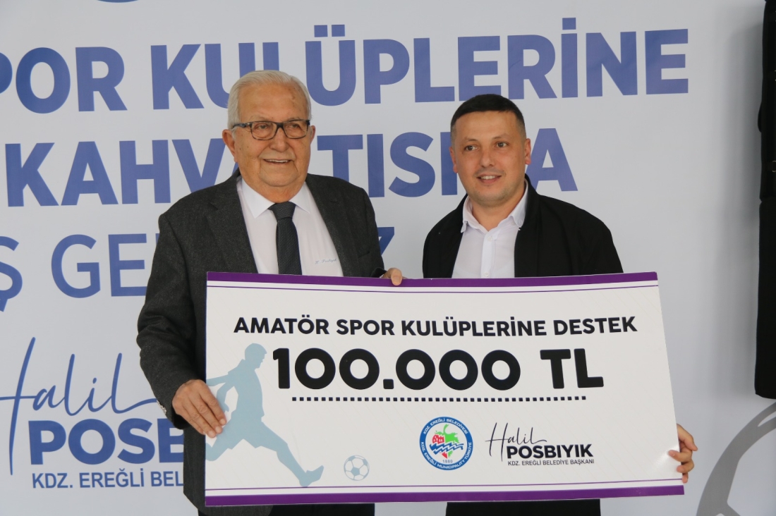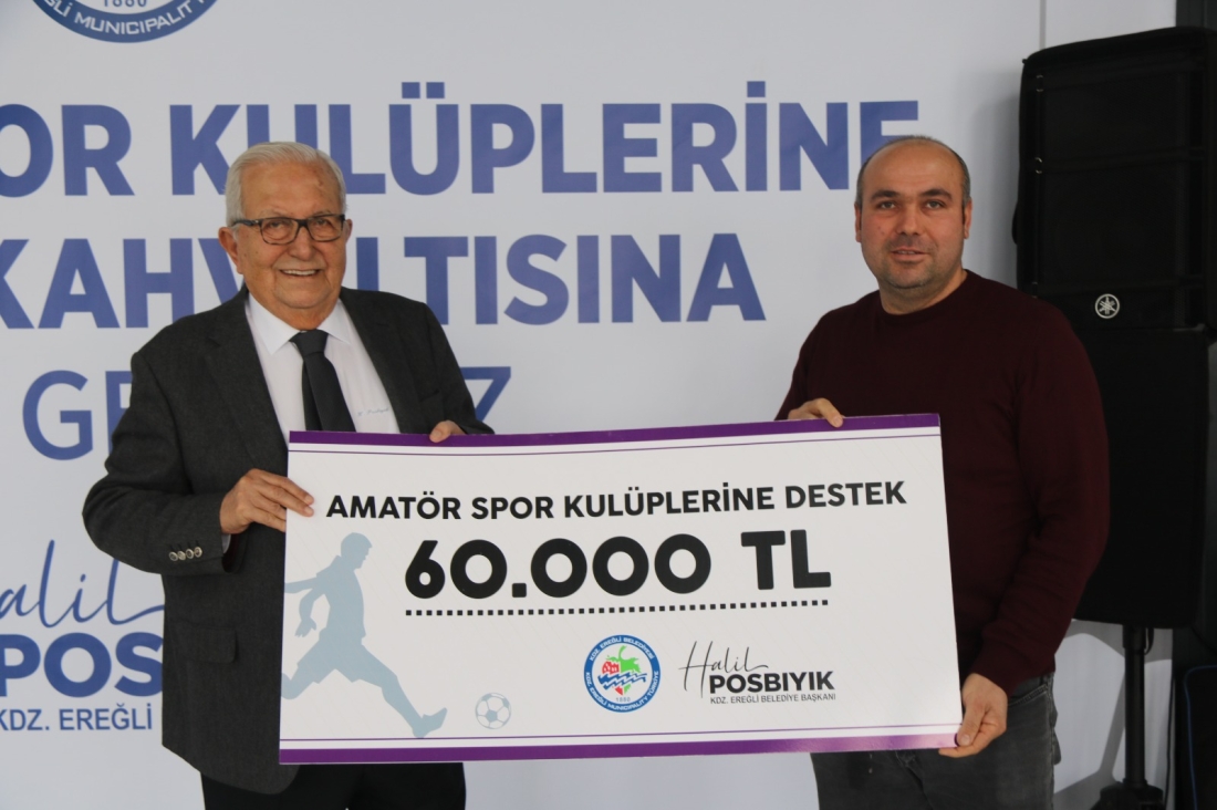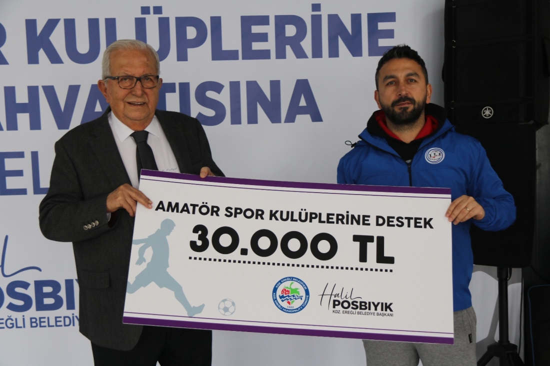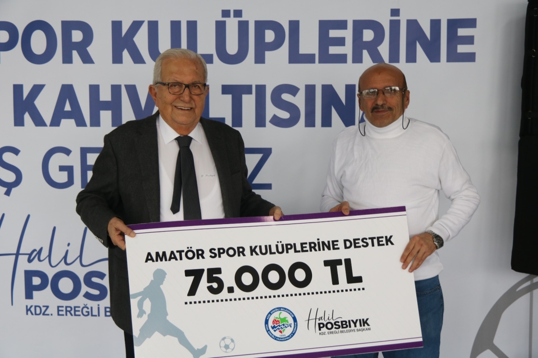 Kdz. Ereğli Belediye Başkanı Halil Posbıyık, kentteki amatör spor kulüplerinin başkan ve yöneticileriyle bir araya gelerek 22 spor kulübüne 1,5 milyon TL nakdi yardımda bulundu. Başkan Posbıyık, sıkıntılı durumda dahi amatör spor kulüplerine desteği sürdürdüklerini belirterek, Ereğli’de sporda, müzikte, sanatta insan gücü olmasına rağmen spor alt yapısında gereken yatırımların yapılmadığını söyledi; “30 spor kulübü antrenman yapabilmek için Beyçayırı stadını 6’ya, 7’ye bölüyorlar, sırada bekliyorlar. Devrek ve Çaycuma’yı hükümet yatırımlarında kıskanıyoruz” dedi. ASKF Başkanı Kemal Demir’de, “2019 yılından beri amatör spor kulüpleri maddi imkansızlıklar yaşıyor ancak Halil Posbıyık bizi yalnız bırakmıyor. Zonguldak ve ilçelerinde, beldelerinde bu organizasyonu tek yapan Halil Posbıyık, amatör spor kulüpleri adına teşekkür ediyorum” diye konuştu.