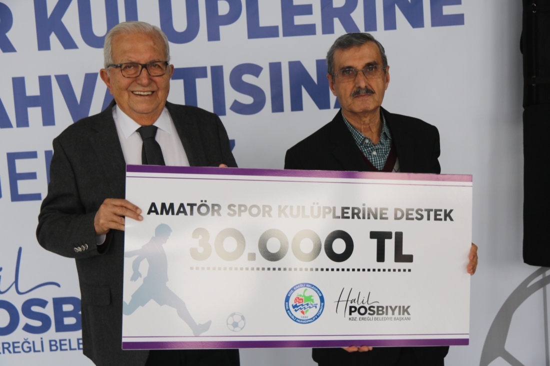 2. Lig’de mücadele eden Ereğli’nin tek Kadın Futbol Takımı olan Ereğli Lisesi Kadın Futbol Takımına 150 bin TL, Süper Amatör Kulübü takımlarına 100 bin TL, 1. Amatör Takımlarına 75 bin TL, 2. Amatör Takımlarına 60 bin TL ve altyapılara 30 bin TL olmak üzere toplam 22 kulübümüze 1,5 milyon TL nakdi yardım yapıyoruz. Kulüplerimize hayırlı uğurlu olsun, güle güle harcasınlar. Allah yollarını açık etsin.