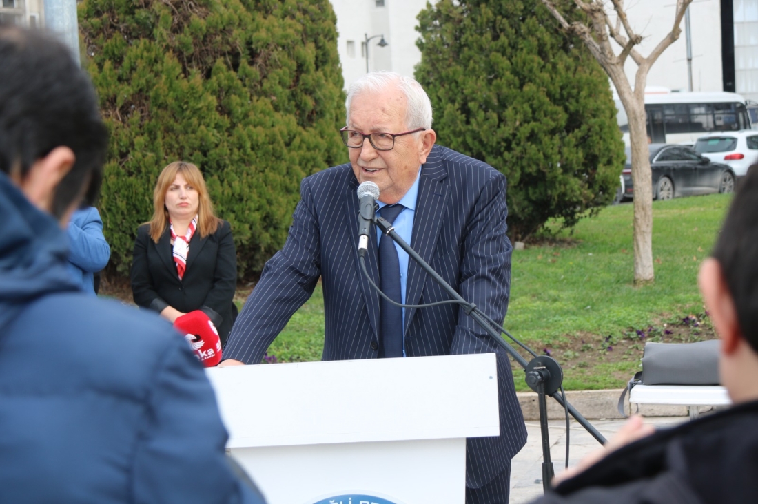 Saygı duruşu ve İstiklal Marşı’nın okunmasının ardından Belediye Başkanı Halil Posbıyık, depremde hayatını kaybedenleri yaptığı konuşma ile andı.
