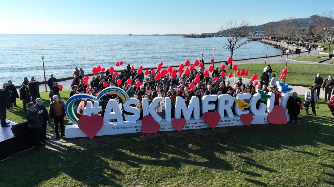 Sahilde bulunan Aşkım Ereğli yazısının etrafında yapılan etkinliğe Belediye Başkanı Halil Posbıyık, eşi Neriman Posbıyık ile birlikte katıldı. Etkinlikte her yaştan sevgililer gönüllerince eğlendi. Bugün evlenen 3 çift, mutluluklarını Ereğlilerle paylaştı. Başkan Posbıyık ve eşi Neriman Posbıyık, katılanlara gül takdim etti. Canlı müzik, dans gösterileri, sürpriz ikramlıklar, fotoğraf köşesi, sevgi duvarının yer aldığı etkinlikte dilek balonları gökyüzüyle buluştu.