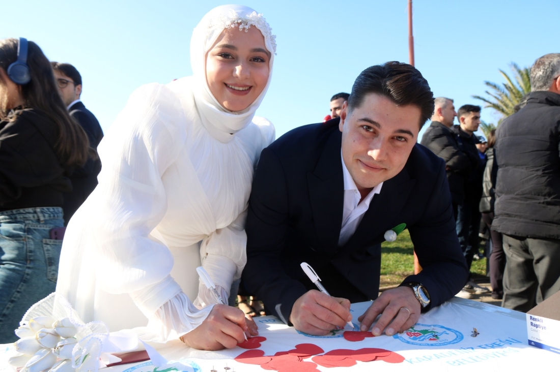 Kdz. Ereğli Belediyesi’nin 14 Şubat Sevgililer Günü’nde, sahilde bulunan ‘Aşkım Ereğli’ yazısının etrafında düzenlediği etkinlik yoğun ilgi gördü. Belediye Başkanı Halil Posbıyık ve eşi Neriman Posbıyık, sevgilerini Ereğlilerle paylaştı. Canlı müzik eşliğinde her yaştan sevgililer gönüllerince eğlendi. Bugün evlenen 3 çift, mutluluklarını Ereğlilerle paylaştı.