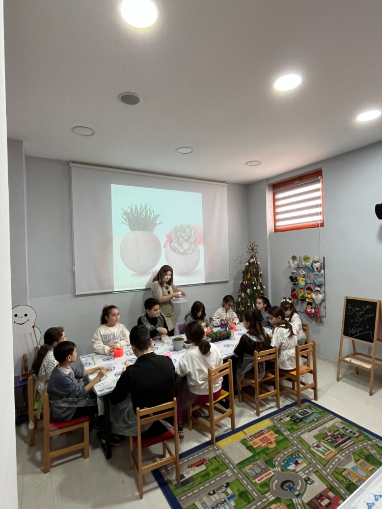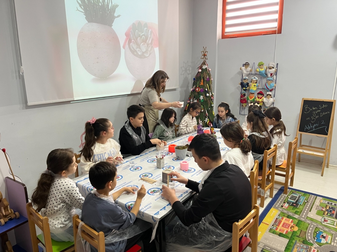 Kendi saksılarını tasarlayıp bitkilerini diken çocuklar, eğlenerek öğrenmenin mutluluğunu yaşadı. Etkinliğin sonunda çocuklara katılım belgeleri ve yaşayan kalemler hediye edildi; hatıra fotoğrafı çekiminin ardından atölye sona erdi.