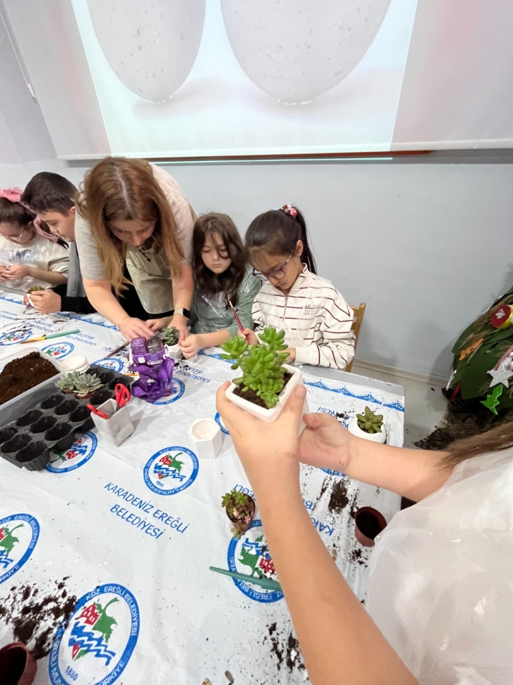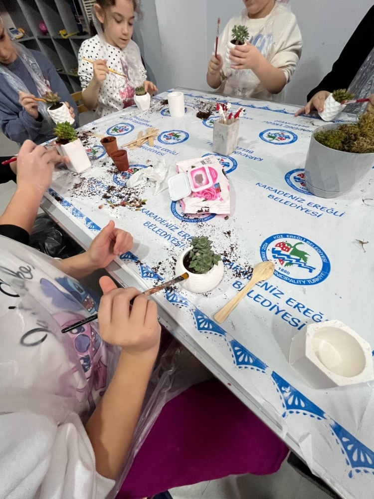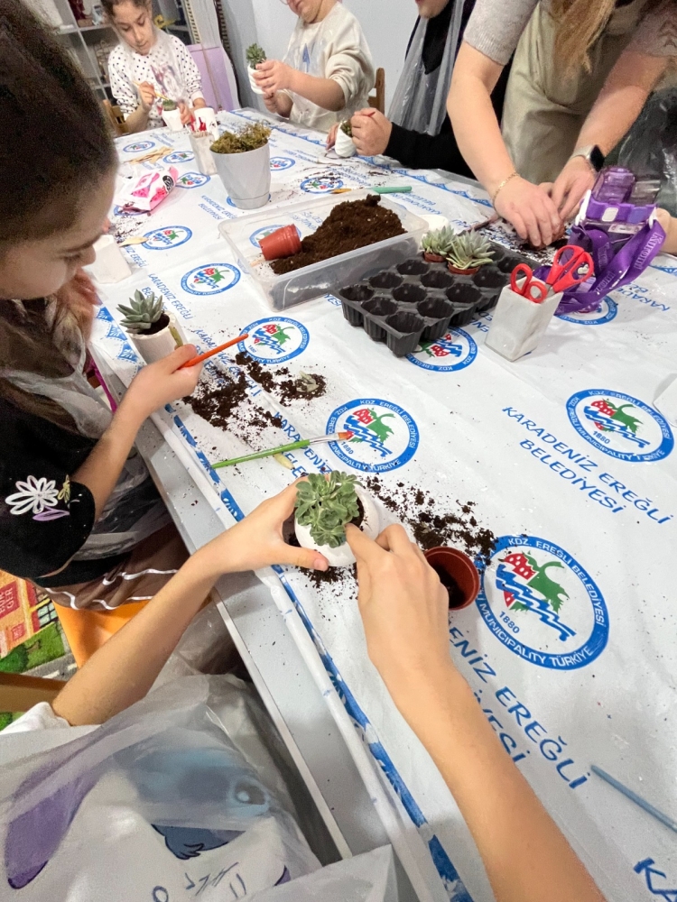 Kdz. Ereğli Belediyesi Oyuncak Müzesi, müze atölyesinde ilgiyle takip edilen ve yoğun talep gören etkinlikleri katılımcılarla yeniden buluşturmaya devam ediyor. Yoğun talep üzerine yeniden gerçekleştirilen “Beton Saksı Yapımı ve Bitki Süsleme” atölyesinde kendi saksılarını tasarlayıp bitkilerini diken çocuklar, eğlenerek öğrenmenin mutluluğunu yaşadı.