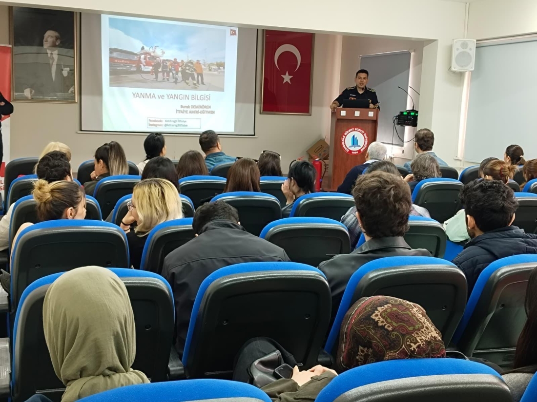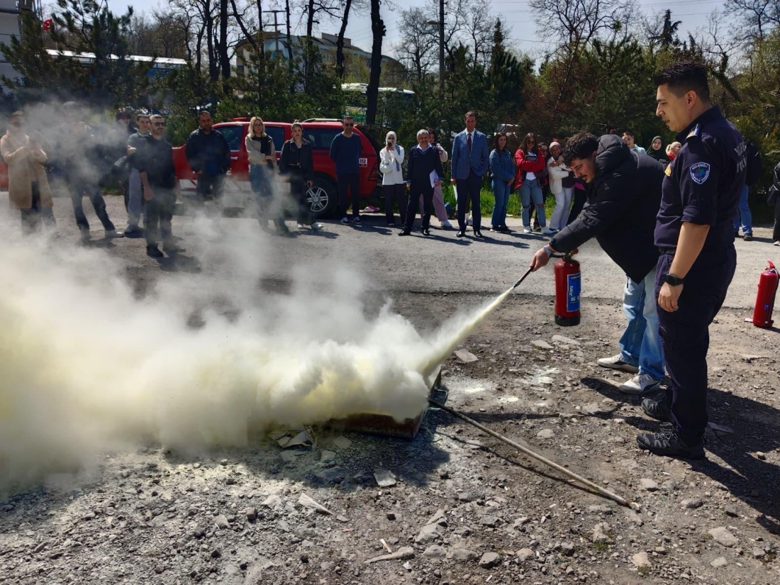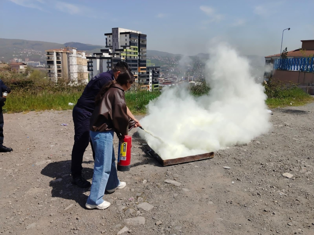 Acil Durum ekipleri tarafından temsili yangın söndürme işlemi gerçekleştirildi. Eğitime katılanlara İtfaiye Müdürlüğü tarafından hazırlanan ‘Yangın Söndürme Cihazı Kullanımı’, ‘Evde Güvenli Yaşam’ ve ‘Temel Deprem Bilgisi’ adlı eğitici kitapçıklar dağıtıldı.